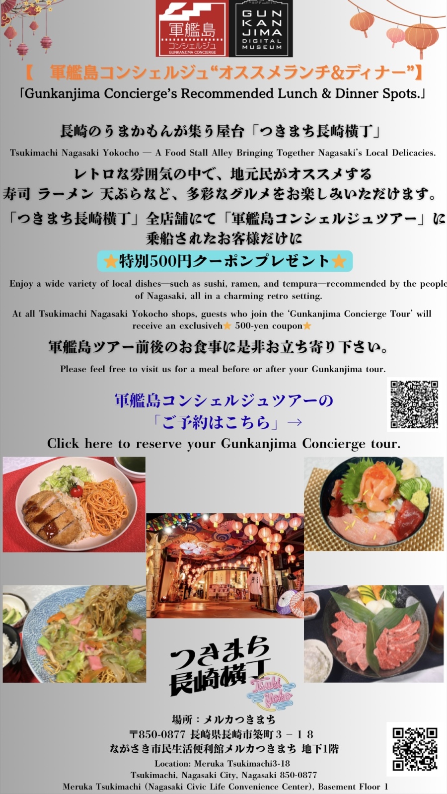軍艦島コンシェルジュ✖️つきまち長崎横丁 乗船された方だけにお食事券500円OFFキャンペーン