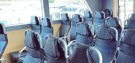 安⼼の座席指定&快適な⼤型船でファミリーやご年配に優しい
